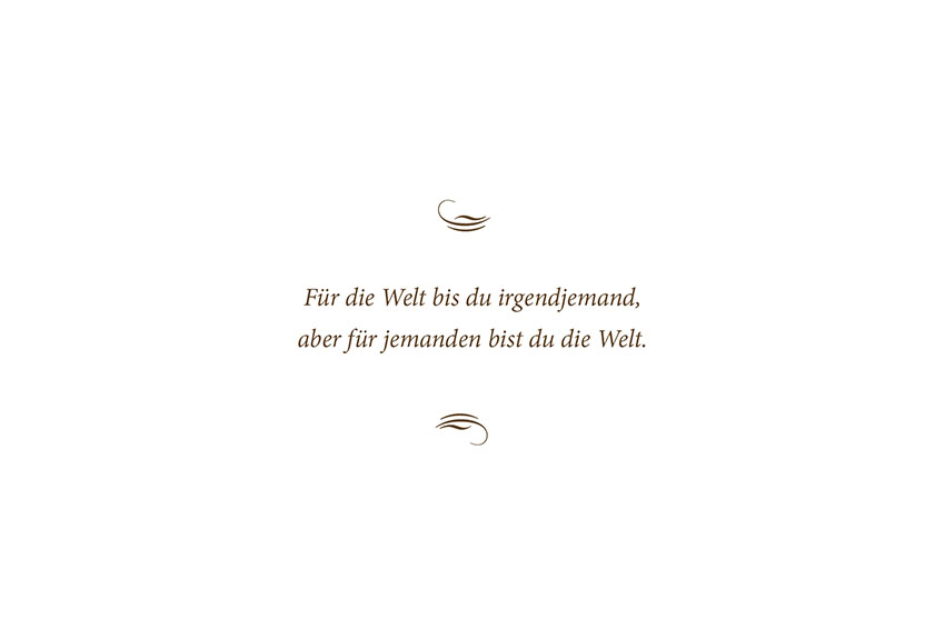 Übrigens: Die Abbildungen unten dienen als Ansicht oder Inspiration für Euch. Wir werden Eure persönlichen Texte in diesem Style gestalten. Es sei denn, Ihr äußert andere Wünsche.