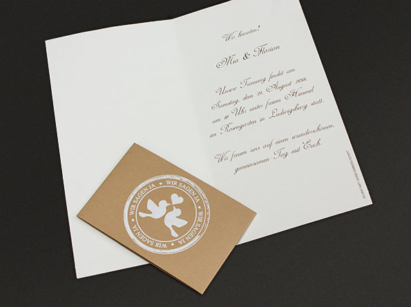 Eine vierseitige Klappkarte mit Euren aufgedruckten Texten wird