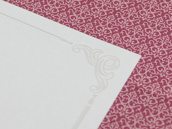 Ihr möchtet eine elegante und stilvolle Einladung für Eure Hochzeit? Diese klassischen Hochzeitseinladungen überzeugen mit geprägten, seidenmatt lackierten floralen Mustern, die dem Design eine zeitlose Eleganz verleihen.